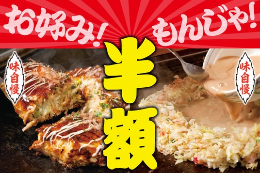 お好み焼き・もんじゃ焼き4品を半額で提供