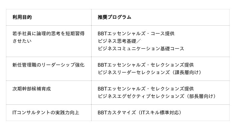 - 短期集中型:BBTエッセンシャルズ・コース提供(約20時間・約40時間)