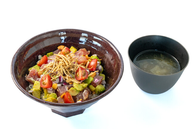 キハダマグロとアボカドのポキ丼は、24ヶ月長期熟成したナンプラーを使用し、ライムの香りでオリエンタル風に仕立てました。