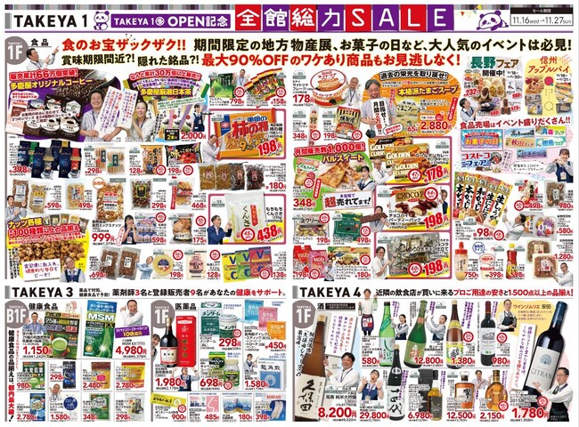 創業76年、上野・御徒町のディスカウントストア「株式会社多慶屋」(本社:東京都台東区、代表取締役社長:竹谷 宗二)では、多慶屋の新館TAKEYA1 グランドオープンを記念し『全館総力SALE』を開催いたします。2022年11月16日(水)~11月27日(日)までの期間、食品や雑貨などの日用品から家電、時計、宝飾品やブランド品など、多慶屋だから出来る充実の品揃えと新館グランドオープンだからこそ実現したお得な価格で販売します。