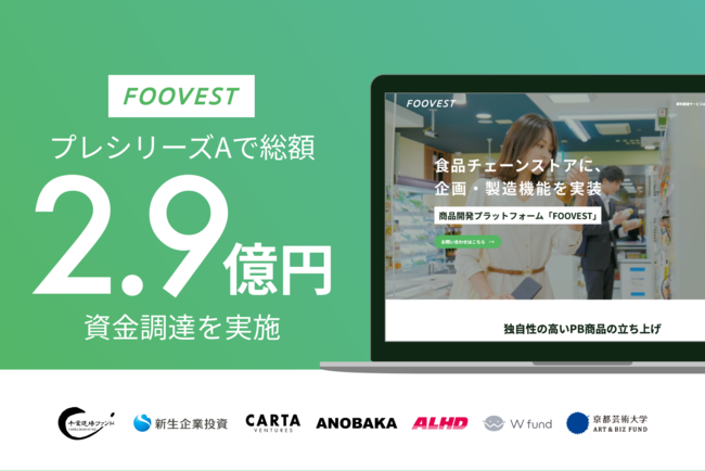 この度、食品製造プラットフォーム「FOOVEST(https://www.foovest.com/)」を運営する株式会社ukka(東京都渋谷区、代表取締役 谷川佳)は千葉道場ファンド、新生企業投資 、CARTA VENTURES、アクアクララレモンガスホールディングス、ANOBAKA、W fund、京都芸術大学Art&Bizファンドを引受先として総額2.9億円(金融機関からのデットファイナンス含む)を調達したことをお知らせします。