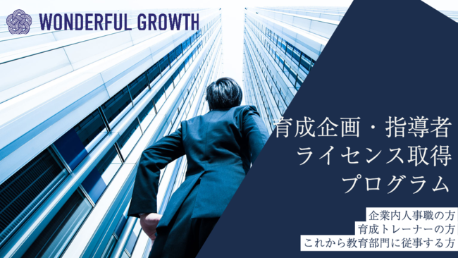 WONDERFUL GROWTH(本拠地:東京都三鷹市 https://wonderful-growth.com/)は、2022年11月4日より、人材育成の企画開発・運営を行う方向けのライセンスサービスとして、「人材育成企画・指導者ライセンス」の受講申し込みの受付を開始いたしました。