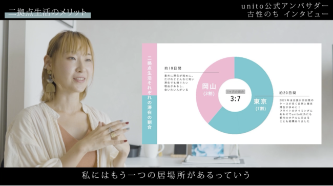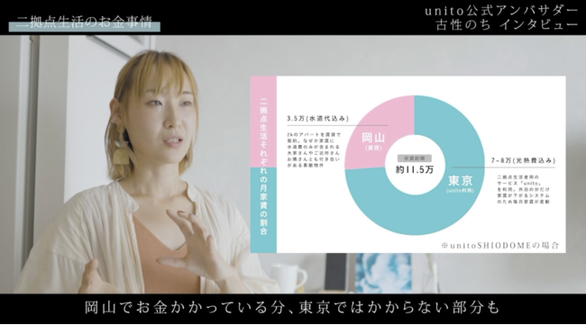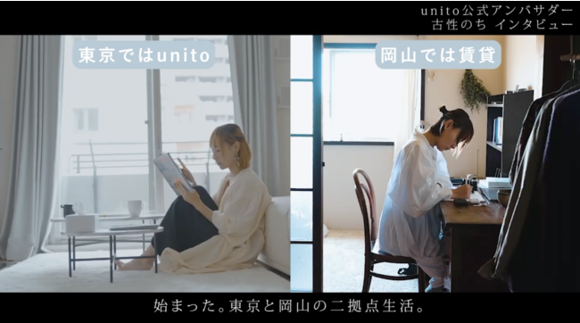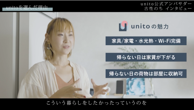 帰らない日は家賃がかからない住まい「unito(ユニット)」を提供する株式会社Unito(東京都千代田区、代表取締役:近藤佑太朗、以下ユニット)は、ユニット二拠点生活アンバサダー・古性のちさんのインタビュームービーを公開しました。