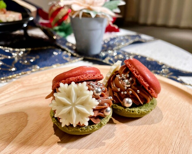 韓国スイーツのおなじみトゥンカロン。口溶け良いチョコクリームをサンドし冬仕立てにしました。
