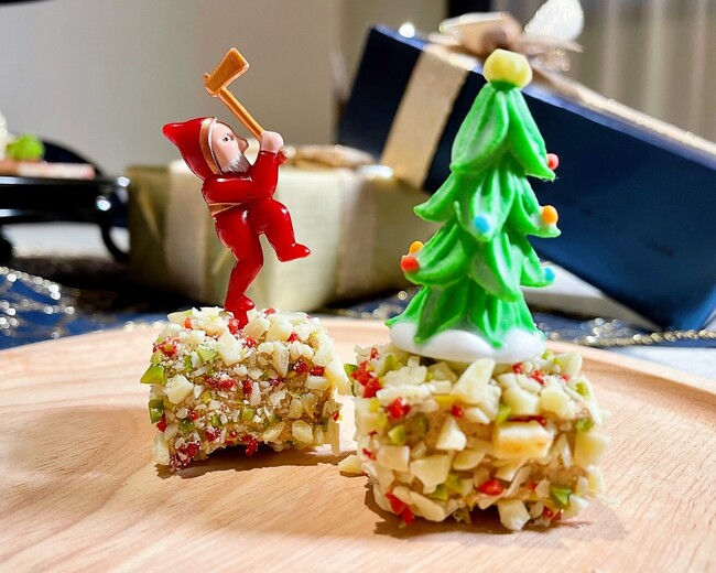 ホリデーシーズンを彩る華やかなクリスマス・アフタヌーンティー。今年は特に口どけ、舌触りにこだわって作りました。口に運んだ時の溶けるような食感。ぷるぷるした質感。お菓子のもろさ、はかなさ。冬の寒さ、多忙な時期の心を癒す、優しい甘さを表現しました。