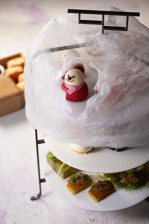 旬の食材を使ってお届けする季節のアフタヌーンティーセットがクリスマスの装いに。奥日光に降り積もった粉雪を思わせる綿あめのドームを開けると、スノーマンがお出迎え。この時季旬を迎える「とちおとめ」と「日光御養卵」のショートケーキは、素材の味わいを感じられる一品。日光食材のセイボリーもふくめ、シェフのこだわりを詰め込んだ可愛らしいフード11品をお贈りします。