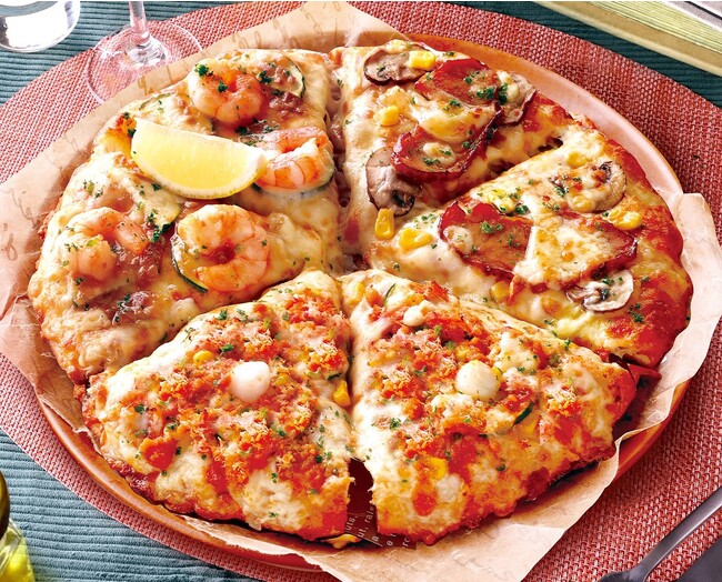 『冬のおすすめトリオ』は、冬の新作「紅ズワイガニとオマール海老ソースの贅沢ピザ」に、大人気の「大海老のガーリックシュリンプ」、定番人気No.1の「テリヤキチキン」を1枚で楽しめPサイズ限定の新商品です。