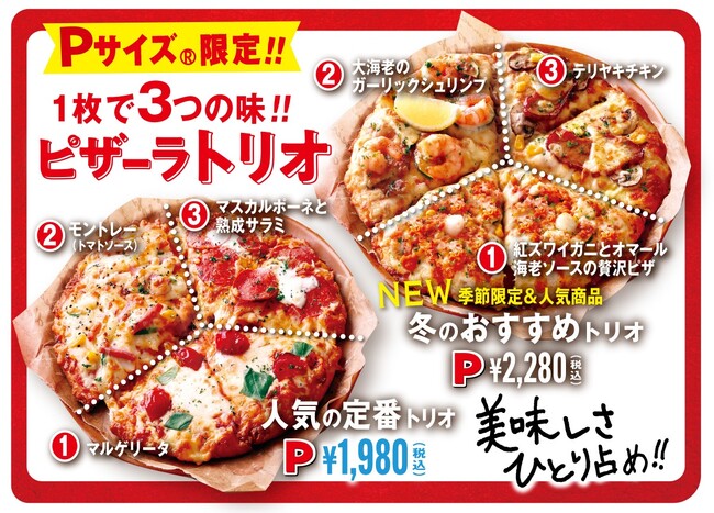 ぜひこの冬は、新作『冬のおすすめトリオ』や『人気の定番トリオ』で、気軽にピザーラをお楽しみください。