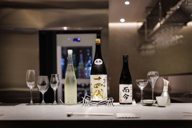 こちらの店舗では上述のおまかせコースをベースとしつつ、日本酒の専門家である日本酒版ソムリエ、SAKE DIPLOMAの資格を保有したスタッフセレクトによる全国から厳選した日本酒と鮨の極上ペアリングが楽しめる「SAKEペアリングコース」もご用意。※鮨 無垢でもペアリング対応可能