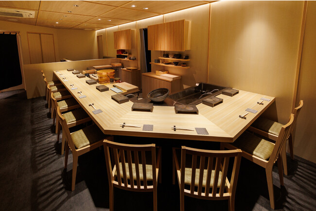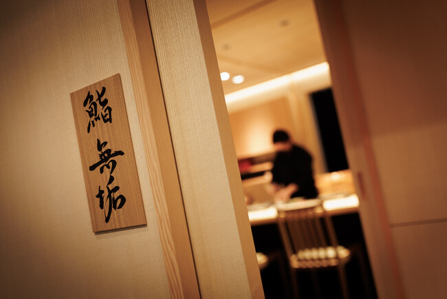 鮨 無垢の店内を脇目に通りながら案内された扉を開けると、まるで別世界のような空間がお出迎えします。