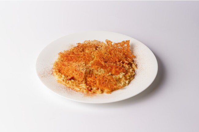 “Moepiccola” の甘みにグアンチャーレの旨味とカリフラワーで味に奥行きを持たせ、チーズでまとめたトマトのリゾット。