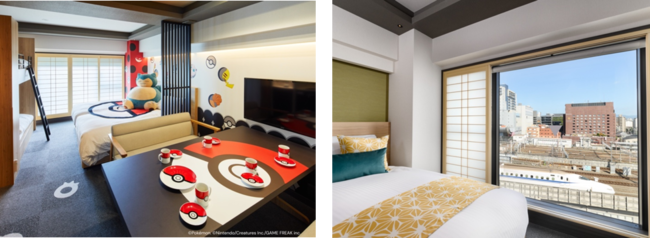 「MIMARU京都 STATION」は、京都駅徒歩2分という好立地で、千本鳥居で知られる伏見稲荷神社や近隣都市の人気社寺へのお参りにも便利です。「ポケモンルーム」は、ベッドの上でお出迎えする巨大なカビゴンのぬいぐるみをはじめ、オリジナルデザインのお?やカップを備えた特別な空間。窓の外の新幹線を眺めながら車掌遊びができるお部屋もあります。お子さまの思い出づくりにもおすすめです。