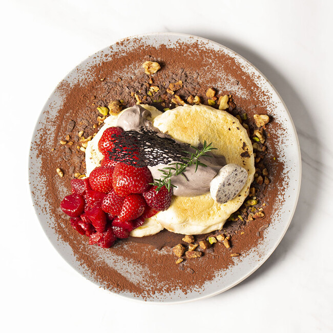 とろける食感を楽しめるパンケーキは一般的なリコッタパンケーキのチーズの約1.5倍の量を使用。オーダー毎にたてるメレンゲと合わせており、口当たりは軽く香り高い仕上がりです。