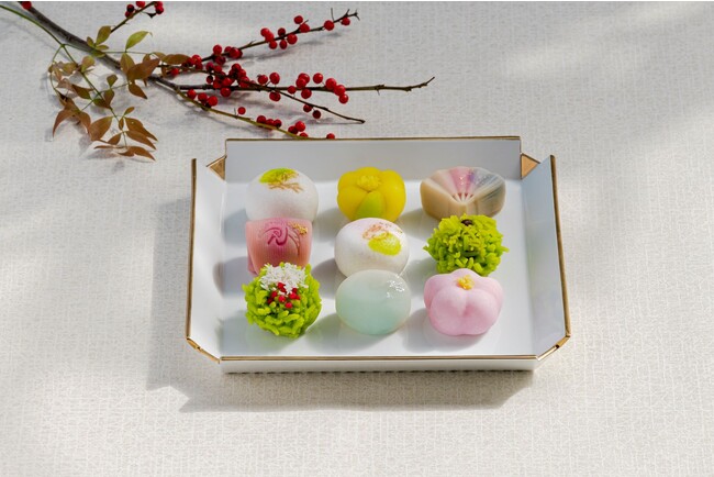新春の情景を表現した、この期間だけの上生菓子です。新春の?おめでたい”を感じる彩り華やかで花の細部までこだわった美しい見た目はSNS映えも期待できます。