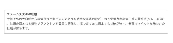 提供牡蠣:ファームスズキの「塩田熟成牡蠣」 価格調整中
