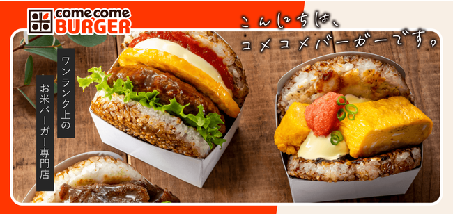 「comecomeBURGER」は、新たな時代を代表する一家団欒のジャパニーズファーストフードを目指して創業した、お米と素材とボリュームにこだわるワンランク上のお米バーガー専門店です。