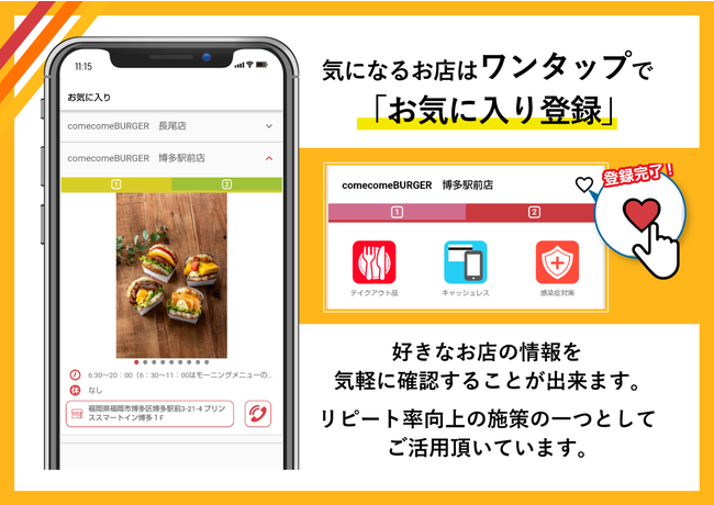 お店を「お気に入り登録」をすることもでき、検索する手間を省いて、お気に入りのお店の情報を確認することができます。