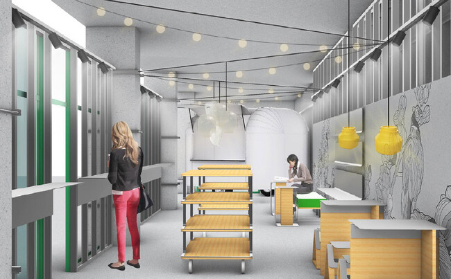 高架下の荒々しさを敢えて残し、カウンター、ベンチ、テーブルなど、一人でも大人数でも楽しめる可変的な空間で、昼と夜で異なる表情、飲食シーンを提案しています。