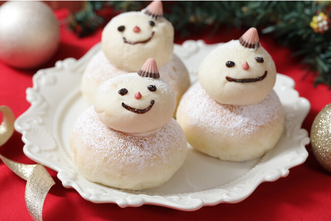 もっちり、ふんわりとした生地にキュートな笑顔とアポロの帽子をトッピングして、スノーマンに仕上げました。