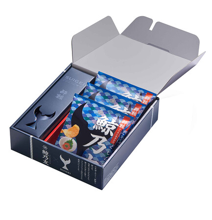 「鯨乃友 あわせて旨みが華やぐセット」は、特製のギフトボックスに入れてお客様のもとへお届けします。ご自身での晩酌にはもちろん、お祝いやお歳暮などのギフトにもぴったりですので、この機会に大切な人へお贈りしてはいかがでしょうか。
