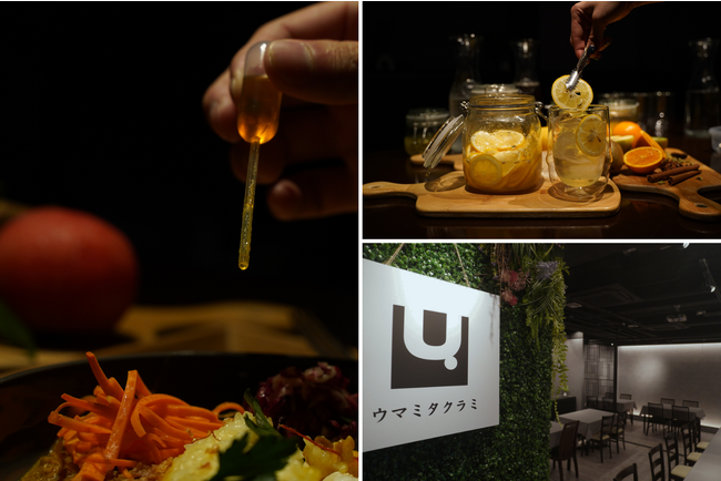 「ウマミタクラミ」は、旨味豊かな自然派料理を提供する新業態です。若手シェフが独自に考案した隠し味が効いた「特製キーマカレー」や、規格フルーツを活用した「クラフトコーラ」「クラフトレモネード」などの各種ドリンク、健康にも美味しくも気になるメニューが揃っています。また、サステイナブルコーヒーも取り扱っており、環境にも配慮したお店です。