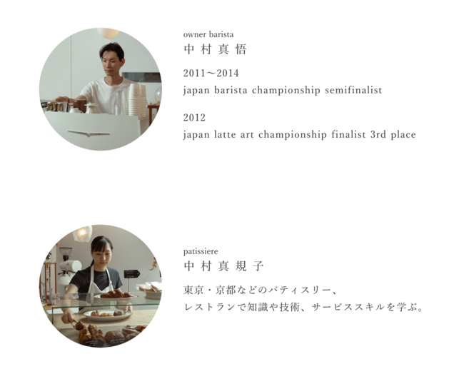 japan barista championshipなど数々の大会で功績を残し、自店舗の店長兼R COFFEE STANDのコーヒーディレクターを務める中村 真悟バリスタと、パンやヴィエノワズリーを専門とするパティシエ中村 真規子の2人で経営。