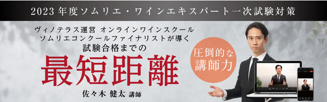 オンラインに特化したワインスクール ヴィノテラスでは、2023年3月1日(水)より、2023年度ソムリエ・ワインエキスパート試験対策講座を開講。講座開始に先駆け、オンライン無料体験会を開催いたします!試験対策講座を担当する佐々木講師自らが、講座の進め方や試験に向けての心構えなどを解説。どなたでも無料でご参加頂けますので、是非お気軽にお申し込みください。参加費:無料※全日程内容は同じ講座です。お一人様一回限りの受講となります。