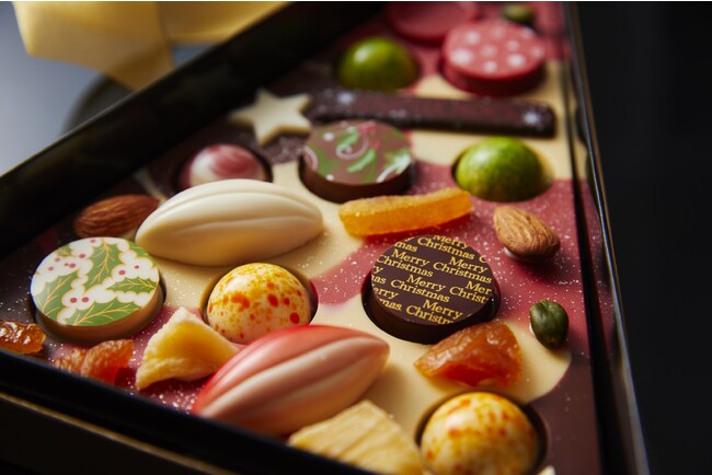 毎年ご好評をいただいている「Xmasツリーショコラ」。2023年バージョンは、「フルーツXmas」をテーマに、ベリー、シトラス、トロピコなどの新作ボンボンショコラをツリーのオーナメントに見立てて詰め合わせました。土台まで丸ごと食べられるツリーショコラは、カカオ豆の選別・焙煎から手掛ける自家製ビターミルクチョコレートをベースに、苺とパッションフルーツのチョコレートを組み合わせ、きらめくイルミネーションにほんのりと照らされるオーナメントをイメージした仕上がりに。ショコラティエがひとつひとつ丁寧にお作りしている為、ご用意できる数量に限りがございます。この早期予約を利用して確実に手に入れてはいかがでしょうか?