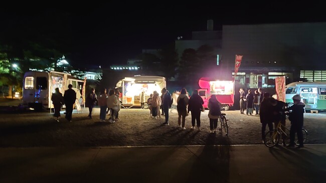 イルミネーション期間中、松本城公園内で毎週金曜日と土曜日にキッチンカーが出店。ホッと一息つける温か