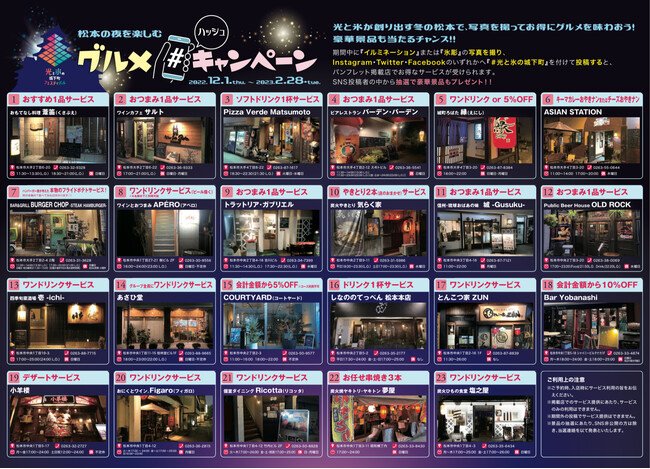 ずれかへ「#光と氷の城下町」を付けて投稿すると、市内の提携飲食店でお得なサービスが受けられます。