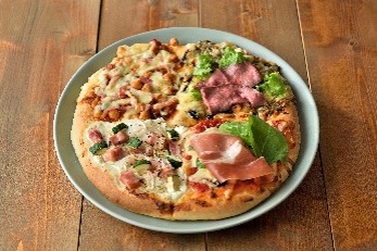 日本「海苔チーズ」、ドイツ「サワークリーム」、コスタリカ「チリコンカン」、スペイン「アンチョビトマト」といった4カ国を味わえるソースに、常陸牛ローストビーフや常陸の輝き生ハム等を盛り込んだ豪華なクアトロピザ!