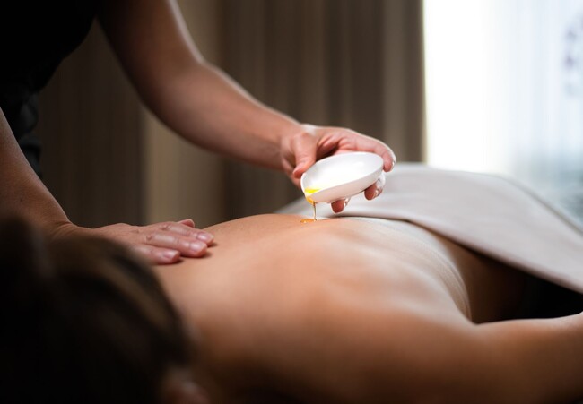 マッサージオイルにはイングリッシュラベンダーやスイートバジルにジャスミンなど19のピュアなエッセンシャルオイルを配合した「NEOM Sleep」を使用し、心身を落ち着かせ安らかな就寝ができるよう準備します。頭、首、肩、背中をゆっくりとほぐし、所々ホットストーンを用いる事で、睡眠導入を促す副交感神経を高め、全身の緊張を和らげていきます。また、仙骨部分に温かいクレイパックを当て筋肉の深部を解放させ、むくみを和らげデトックスを促す90分のトリートメントもご用意しております。