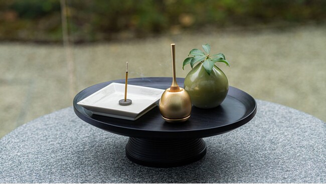 キットには、祇園、建仁寺で実施されている坐禅の方法をベースにしたメディテーションガイド、おりんとお香が含まれます。まずはお部屋から800年の歴史がある池庭に面したバルコニーに出て、四季折々の自然を前に、新鮮な空気を吸い込んでみてください。京都の老舗お香店である松栄堂のお香の香りに包まれながら、澄んだ音色のおりんを3回鳴らすと、自然と心が落ち着くことでしょう。メディテーションガイドでは、禅の瞑想法に基づき、正しい姿勢から呼吸法までマインドフルネスをシンプルに実践する方法をご案内しています。心、身体、魂を整えることで、良質な睡眠に必要な、心身の調和をもたらします。