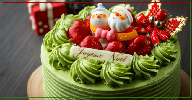 【抹茶】お茶屋ならでは、みどり色のクリスマスケーキ。宇治抹茶がふんわり甘く香ります。