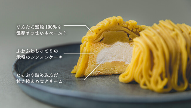 米粉スイーツ・パンのプロフェッショナルなパティシエが素材の風味から食感など丹精込めて作っているコメトコメ。地元和歌山の食材で様々なスイーツを作ってきた中で、「なんたん蜜姫」と出会いました。幻のさつまいもとも呼ばれ、ねっとりした食感をもち、非常に濃厚な甘みを持つこの味わいは素材の味を活かす「こめ油」との相性が抜群なのではないかと思い開発。なんたん蜜姫の甘みや風味を活かしたおいしい米粉とこめ油のモンブランがでました。