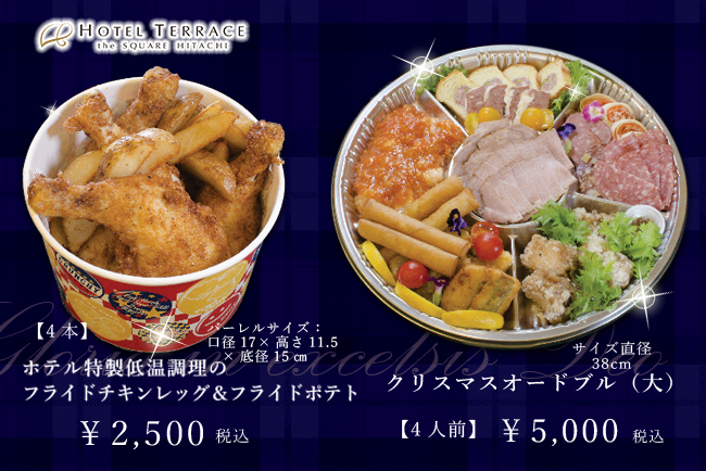 ホテルテラスザスクエア日立 (所在地:茨城県日立市幸町1-20-3、副総支配人:城戸康)では、クリスマスを素敵に盛り上げる、クリスマスオードブルセット&クリスマスケーキを12月の16日(金)・17日(土)・18日(日)・23日(金)・24日(土)・25日(日)の週末限定でご用意いたしました。