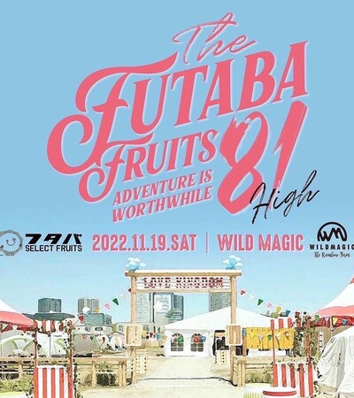 “フタバ81”は、フタバフルーツの創業80周年を記念して開催される野外パーティ。「フルーツの美味しさだけでなく、楽しさを伝えていきたい」という想いのもと、FOOD、ART、MUSIC、FASHIONなど、多様なジャンルで、フタバフルーツとゆかりのあるヒト・モノ・コトが集結します。