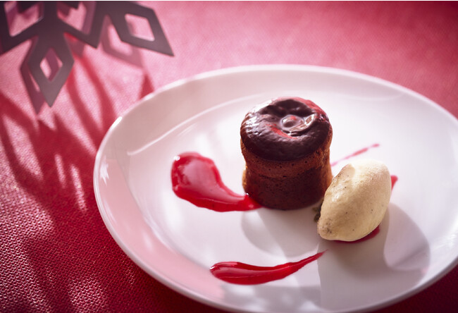 *クリスマススペシャルプレート「アリバ産フォンダンショコラ バニラアイスクリーム&レッドカラントソース」付き