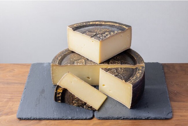 通常オンラインでは販売していない、とっておきのチーズ「ヴュリー・ノワール」です。週に数回、ヴュリー山で採れたピノ・ノワールのワインでウォッシュされています。柔らかく繊細なテクスチャーと、アイボリー~淡い黄色の綿密な生地感。胡桃のようなナッティな旨みとコク、ピノ・ノワールを彷彿とさせるほのかなフルーツの香りが、なんとも上品なチーズです。