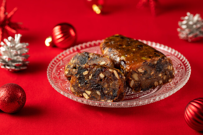 レーズン、オレンジピールなどがたっぷり入った伝統的なクリスマスケーキです。