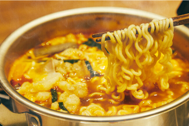 自家製出汁にこだわりの唐辛子、自慢のホルモンを本場韓国から取り寄せた“ちぢれ麺”にあわせた韓国スタイルのラーメンです。