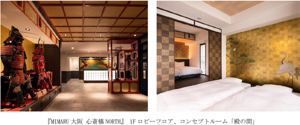 大和ハウスグループの株式会社コスモスイニシアおよび株式会社コスモスホテルマネジメントは、大阪の象徴のひとつである“大阪城”をテーマに、ロビーフロアに「甲冑(鎧兜)」や「黄金の茶室」をしつらえ、殿や姫君、若君、忍者をモチーフにしたコンセプトルームのある、アパートメントホテル『MIMARU大阪 心斎橋NORTH』を、2022年11月24日(木)に開業します。