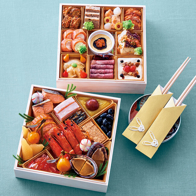 過去2年のトレンドであった「個食」を意識した少人数向けミニサイズのお重の人気は前年並みだが、今年は二段重が前年比151%、和洋中三段重が前年比130%など、ファミリー層向けお重が人気を盛り返している。行動規制が緩和されたお正月を迎えるため、帰省や親族で集まるシーンが増える可能性が高い。