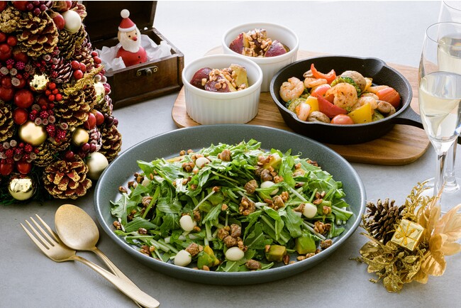 今回、来月に控えるクリスマスの食卓シーンでご活用いただけるよう「クリスマス・スペシャルSET」と「クリスマス贅沢SET」の2種を期間限定で発売します。「クリスマス・スペシャルSET」は、「ごろっと根菜のカレーチキンサラダ」にはじまり、「たっぷり野菜の海鮮パエリア」や「海老と彩り野菜のアヒージョ風」など、大人から子供までお楽しみいただける、計5品が入った満足感のあるセットです。「クリスマス贅沢SET」は、ブランドの中でも1番人気の「セルバチコ香るいちじくとアボカドの大人サラダ」を含む、計3品が入った大人な食卓を意識したセットです。