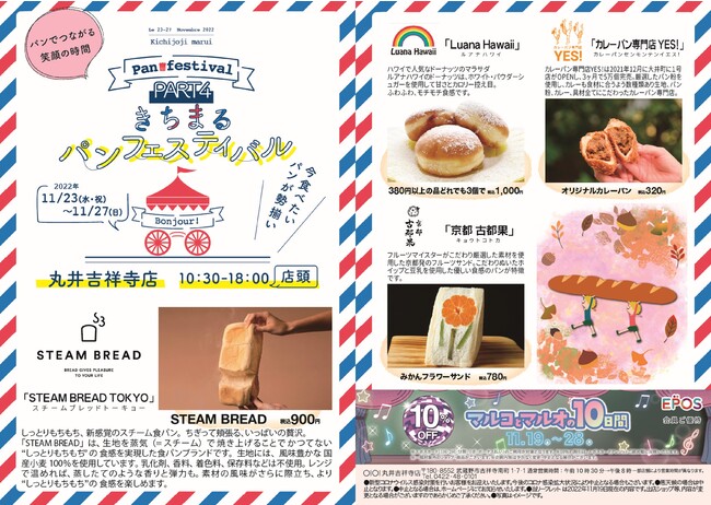 丸井吉祥寺店(株式会社丸井、本社:東京都中野区、代表取締役社長:青野 真博)1F店頭イベントスペースにて、「第4回きちまるパンフェスティバル」を期間限定で開催いたします。