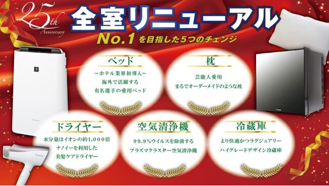 日頃のご愛顧に感謝の気持ちを込め、お客様により快適で上質なご滞在をお届けできるよう、全客室のベッドや備品の一部を一新いたしました。
