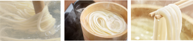 「おいしいうどん」は、徹底的に鮮度にこだわりぬいた「生きている」状態で提供されて初めて実現できる、と丸亀製麺は信じています。丸亀製麺がお届けするうどんは、国内 800 を超えるすべての店で一軒、一軒、手間を惜しまず、毎日、100%国産の小麦粉から打っています。打ち立てのうどんにこだわり、その場で切って、茹でて、作りたてをお客さまに提供しているからこそ、もちもちでおいしい独自の“丸亀食感”をお届けできています。