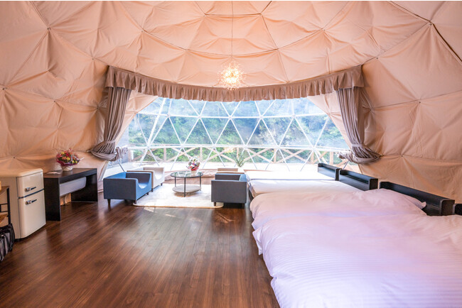 東京都内から車で90分とアクセスも良く、ハイキング、サイクリングコースとしても知られる埼玉県秩父市・定峰峠の秩父定峰清流キャンプ場内に、1日3棟限定のドーム型グランピングが誕生。