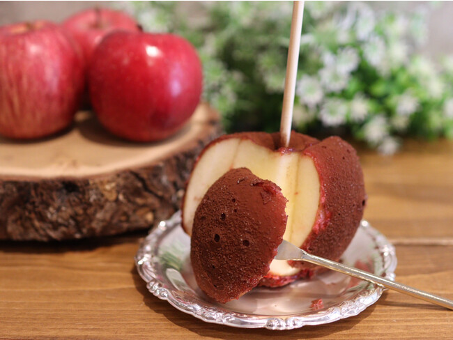 ビターでほろ苦いココアと飴の甘さとりんごの酸味が絶妙にマッチしたりんご飴。