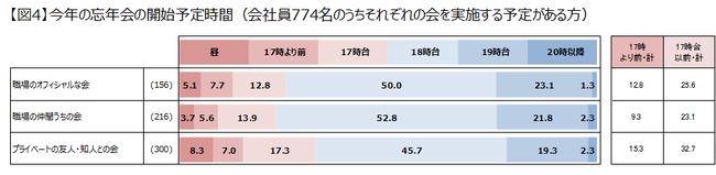 今年の忘年会は時差宴会!? 2割以上が18時より前にスタート!プライベート忘年会ではお昼や17時より前にスタートする人も!